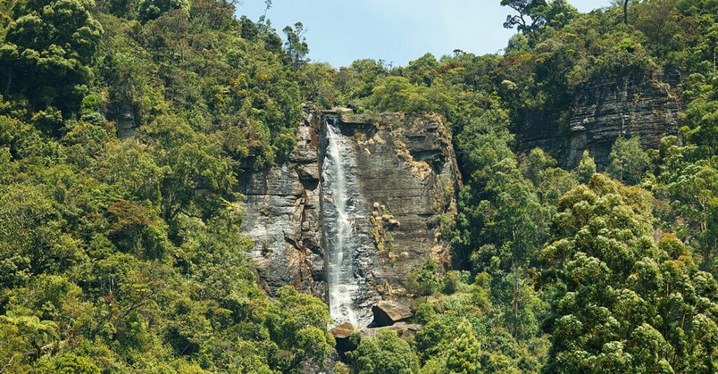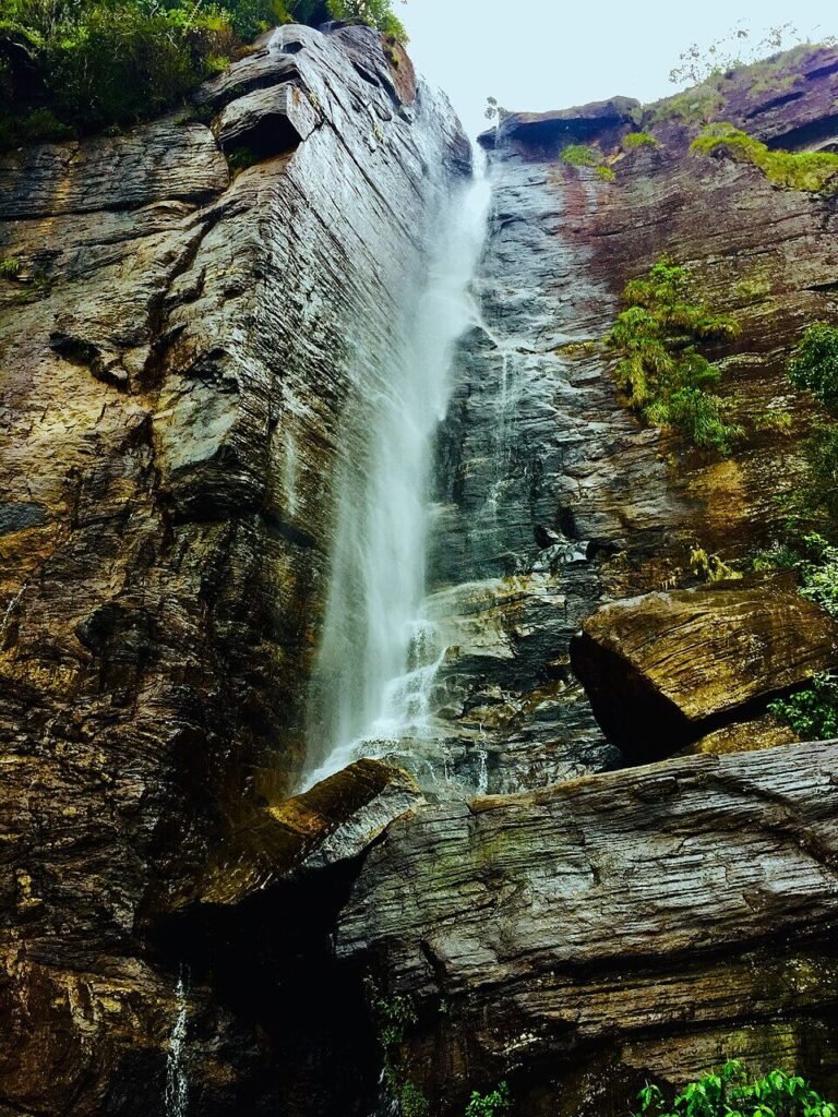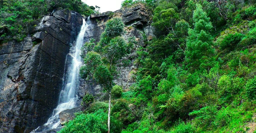 Lovers’ Leap Waterfall is both a natural wonder and a cultural landmark nestled in the verdant highlands of Nuwara Eliya. The waterfall’s name stems from a poignant local legend where two lovers tragically leapt from the precipice, imbuing the site with romantic folklore that resonates with many visitors. Although not as vast as other waterfalls, its striking vertical drop of about 30 meters creates a spectacular curtain of clear, cool water that sparkles in the sunlight.